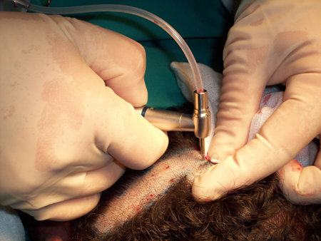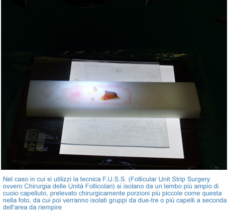 "Lavorata" da personale infermieristico esperto, tale area viene divisa in migliaia di innesti che vengono poi inseriti dal chirurgo nell'area da rinfoltire attraverso minuscoli tagli. Il vantaggio di questa tecnica è legato al numero elevato di innesti che possono essere preparati ed inseriti nel corso di tre ore circa. L'uso competente di questi trapianti follicolari permette di ottenere un risultato estremamente naturale.